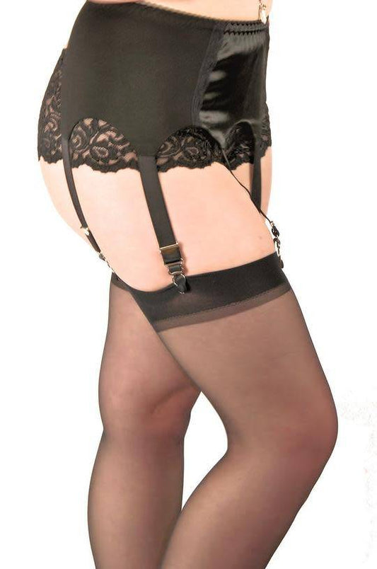 Women's Vintage Style Black Satin Garter Belt with Stockings Set, XL by Nyteez and Leg Avenue