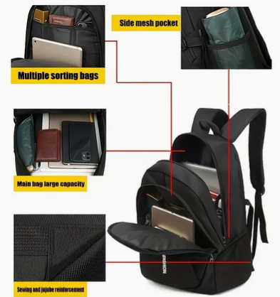 Large Nylon Backpack Black 12.2 in W x 18.8 in H by Jingpin