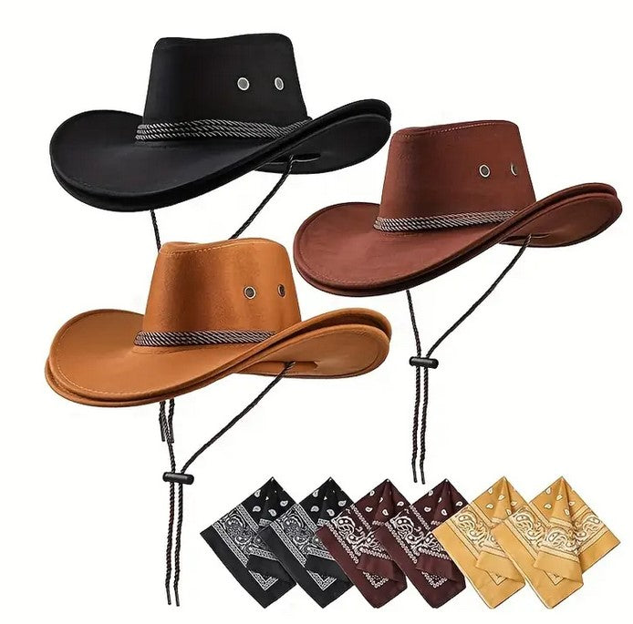 Cowboy Hat and Bandana Set Beige, Black or Brown Assorted