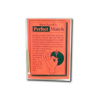 Imagine a match that never goes out. The Perfect Match does just that! A match is struck and cigarette or candle is lit, but wait, the match never goes out. In fact, it will burn for several minutes. The Perfect Match is a brass replica of a full size wooden match, it's made to hold a wick inside and is fueled by candle oil (not supplied). This is a great comedy gag for magician's and M.C.s alike.