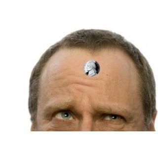 This is a hilarious effect where the magician has a nickel sticking to his forehead. He asks a spectator if he can do the same. Most people will think that this is accomplished by sweat causing the coin to stick. The magician removes the coin and hands it to a spectator, but wait, the coin has a large nail soldered to it.