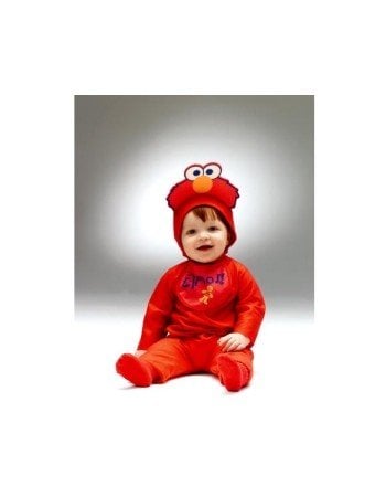 The Official Elmo Costume for infants from Sesame Street comes with a bodysuit, character bonnet, and printed bib. Fits 3-12 Months.