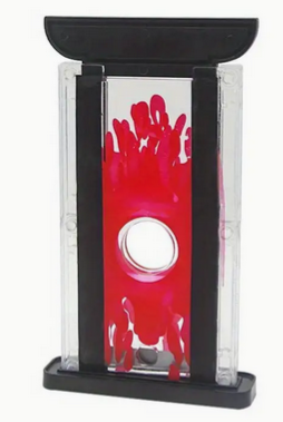 They can see the blade move up and down. Put their finger in the top hole and a small carrot stick in the bottom hole. When you push down, the blade passes through their finger without causing any harm, but it splits the carrot in half!