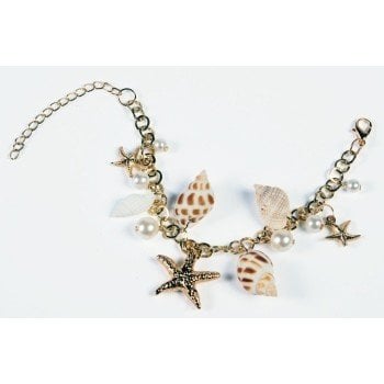 Gold Chain Mermaid Bracelet with Pearls as well as Sea Shell and Star Fish Charms.