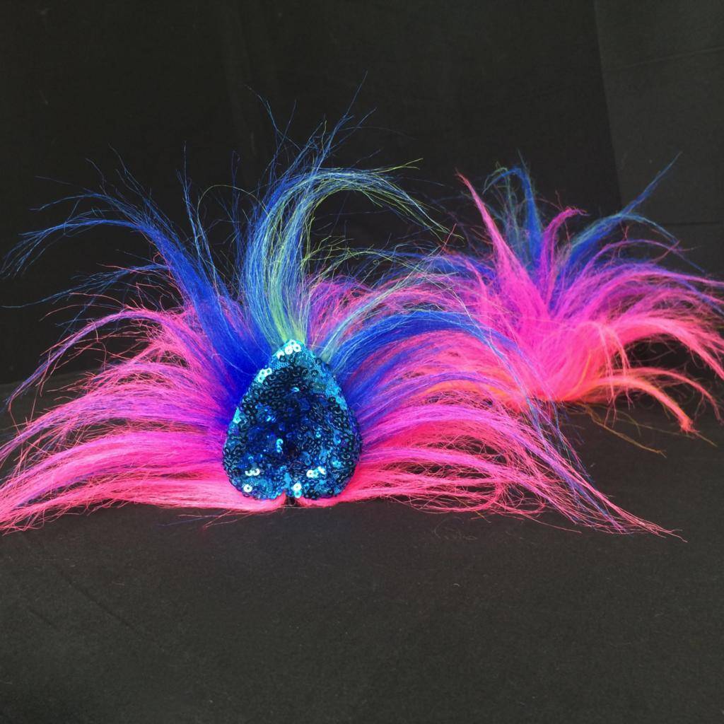 Express your inner rainbow pony with these crazy ears! The rainbow outer fur is matched with a super sparkle teal to make this exciting and playful pair. You won't get lost in the crowd with these on! Pair them with a crazy colorful outfit and go to your favorite dance party, concert or festival. Also great for My Little Pony Fans. Enjoy one of our loudest and most popular ears in the collection!