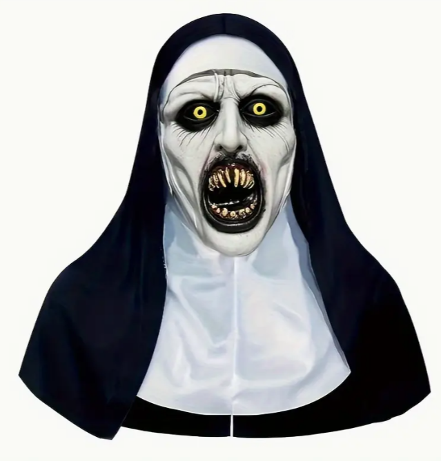 If you’re looking to channel pure nightmare fuel, this nun mask is exactly what you need. Imagine stepping into the darkness, shrouded in the eerie habit, as piercing yellow eyes glare from the shadows. Those unnervingly long, pointed fangs—sharp as a sinister grin—are ready to strike terror into anyone who crosses your path. Dare to wear it, and become the stuff of haunted legends.