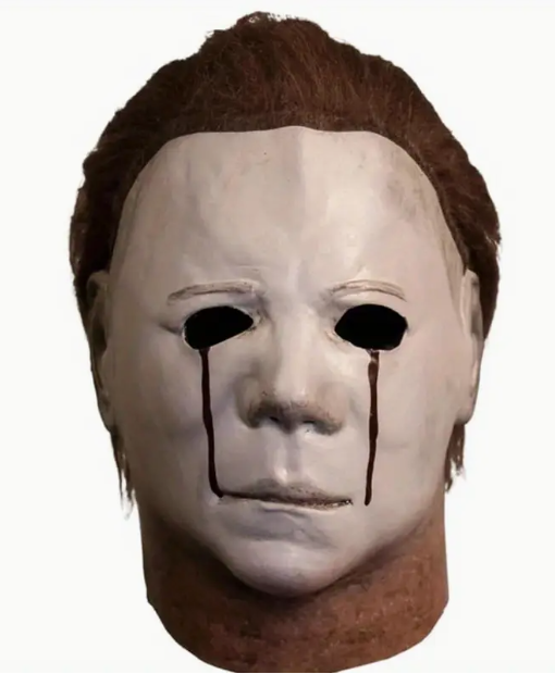 Because fear never dies. This mask captures the chilling presence of Michael Myers from Halloween 2 like never before—his stark white face, now streaked with haunting tears of blood, a symbol of relentless horror. The attached hair adds to the realism, and the full beige neck completes the eerie silhouette.
