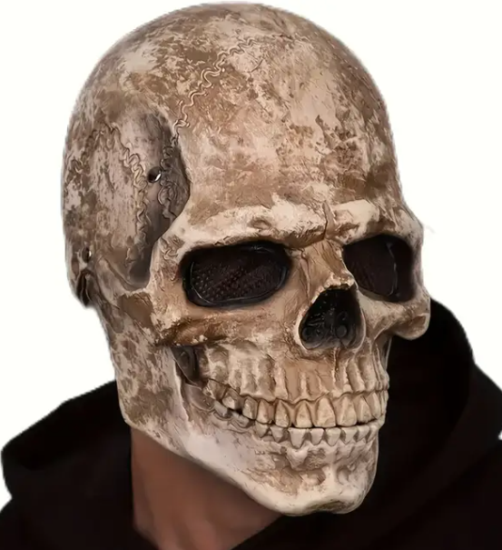 Step into the realm of the undead with the Skull Mask with Moving Mouth—a terrifyingly lifelike creation that looks like it clawed its way out of the grave.