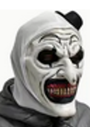 Imagine stepping into the darkness, the eerie glow of a single streetlamp casting flickering shadows. You tilt your head, your terrifying black-and-white clown mask catching the dim light, the exaggerated grin stretching across your latex face. The big, gleaming teeth and tiny hat add to the terror—a silent promise of chaos.