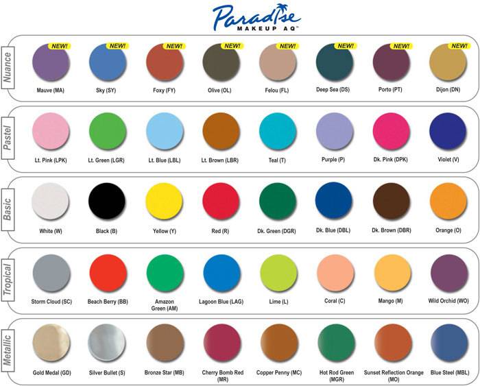 What makes this makeup truly distinctive is our unique blend of base ingredients. Aloe and chamomile combine to make Paradise Makeup AQ safe and gentle to the skin. Glycerin- avocado oil and cocoa butter provide rich- vibrant- color saturated coverage. It washes off easily with just soap and water. No special removers are needed. Brushes and sponges clean easily and will last longer.