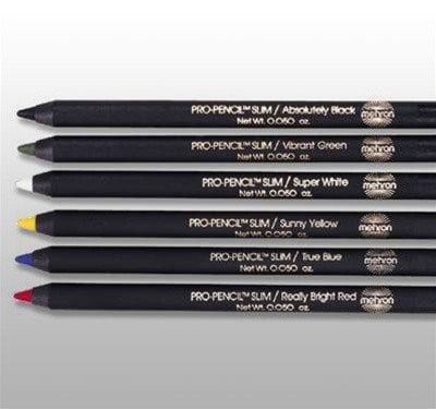 Pro-Pencil™ Slim Makeup Pencil is an exclusive, ultra soft makeup pencil designed and made by Mehron, Innovators of Extreme Beauty Makeup. This Pro-Pencil™ Slim Makeup Pencil was created specifically for outlining and drawing face and body designs when fine lines are required for detailed outlining. Mehron's Pro-Pencil™ Slim Makeup Pencil is currently available in six vivid colors for enhancing and outlining makeup applications. The Pro-Pencil™ Slim Makeup Pencil encasing high quality Mehron Beauty Makeup in a sturdy black "plasticized" casing which cleanly "peels-off" when sharpened. Sharping your Pro-Pencil™ Slim is easy and efficient with Mehron's Pro-Pencil Dual ASharpener.