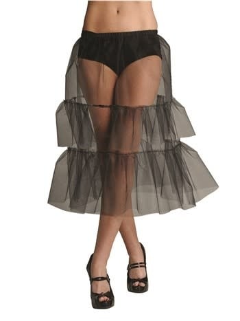 You'll be Flirtin' with the 50's in this tiered black crinoline with elastic waist measures 30" long.