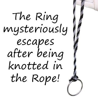 A ring can penetrate into the rope amazingly! Drop “in” the ring from the top or side. Practice a double knot and hold the knot in your palm, while an audience member holds one end of the shoelace. With you they pull and to their surprise, the ring comes out. Instructions included.