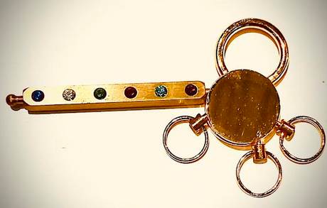 A color changing paddle on your key ring that you can carry everywhere...because it's right on your key ring! A stunning brass paddle is shown to have 6 different color gems on each side. With the wave of your hand, all 12 gems change to match a selected color! Then you return the gems on one side back to their original colors, leaving the stones on the other side in the selected color! Then pass the rod out for examination. A great effect attached to your Trick - KEY Ring (included!). This is great street magic that you can perform anytime, anywhere because it's all right there on your Trick - Key, key ring!